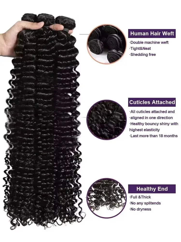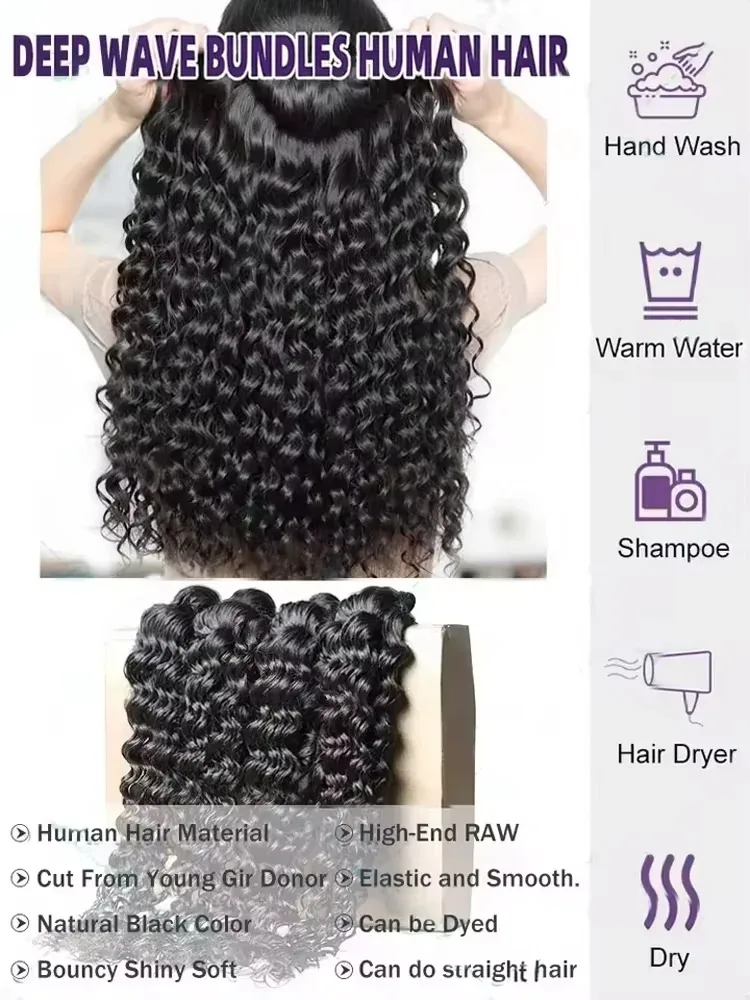 These bundles are available in 30 to 38 inches and come in 1, 3, or 4 bundles options. Each bundle is made from high-quality human hair, ensuring durability and a soft texture. The water wave pattern creates stunning curls that hold their shape while adding movement and volume to your hairstyle.