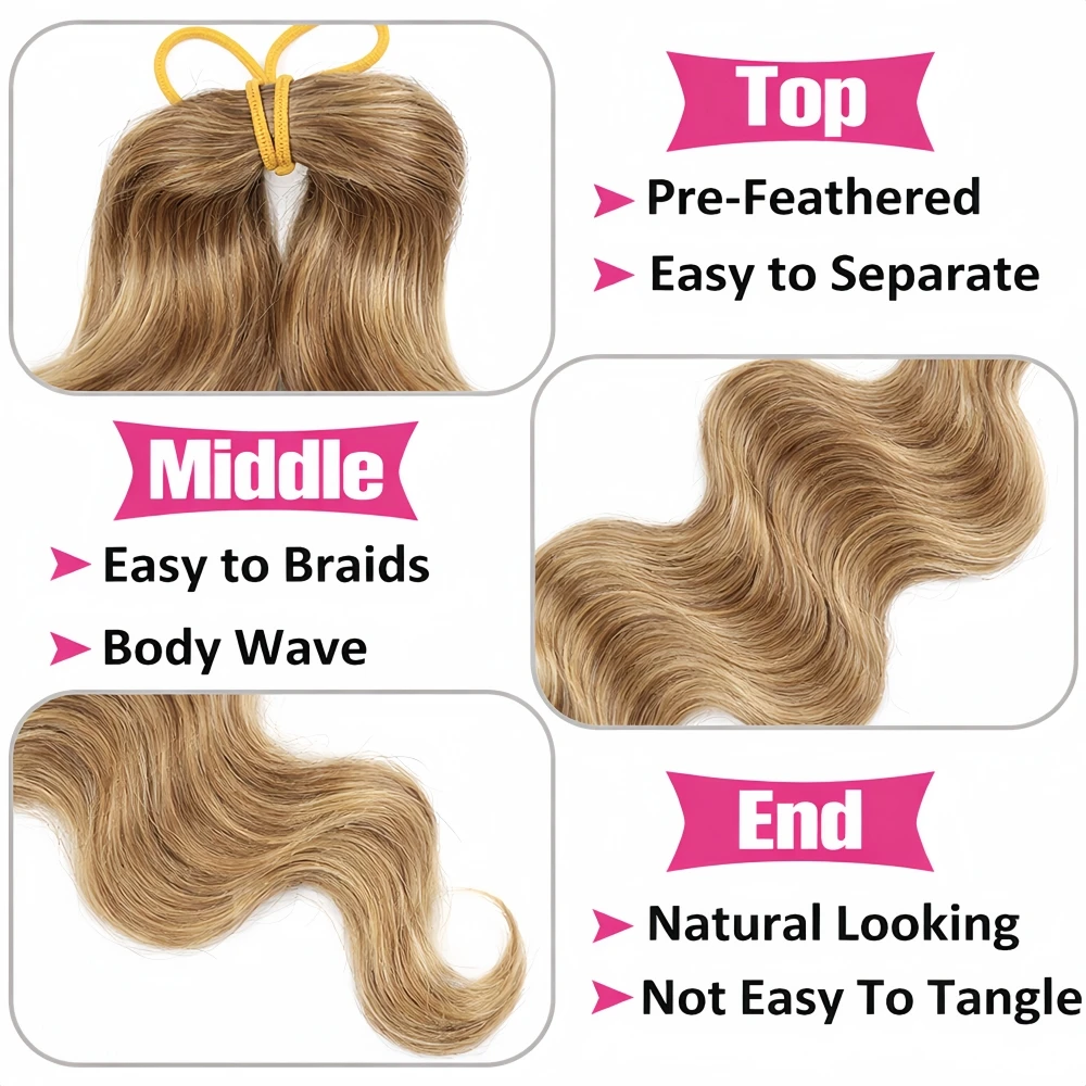 Transform your hairstyle with our 12A Human Crochet Hair Body Wave Bundles. Made from high-quality human hair, these pre-separated #27 honey blonde bundles are perfect for creating stunning crochet styles easily.