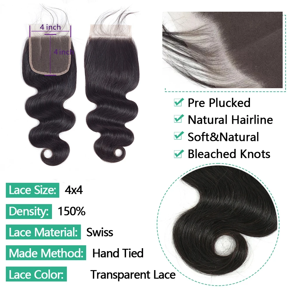 -26%24 Inch Body Wave Lace Closure - 4x4 & 5x5