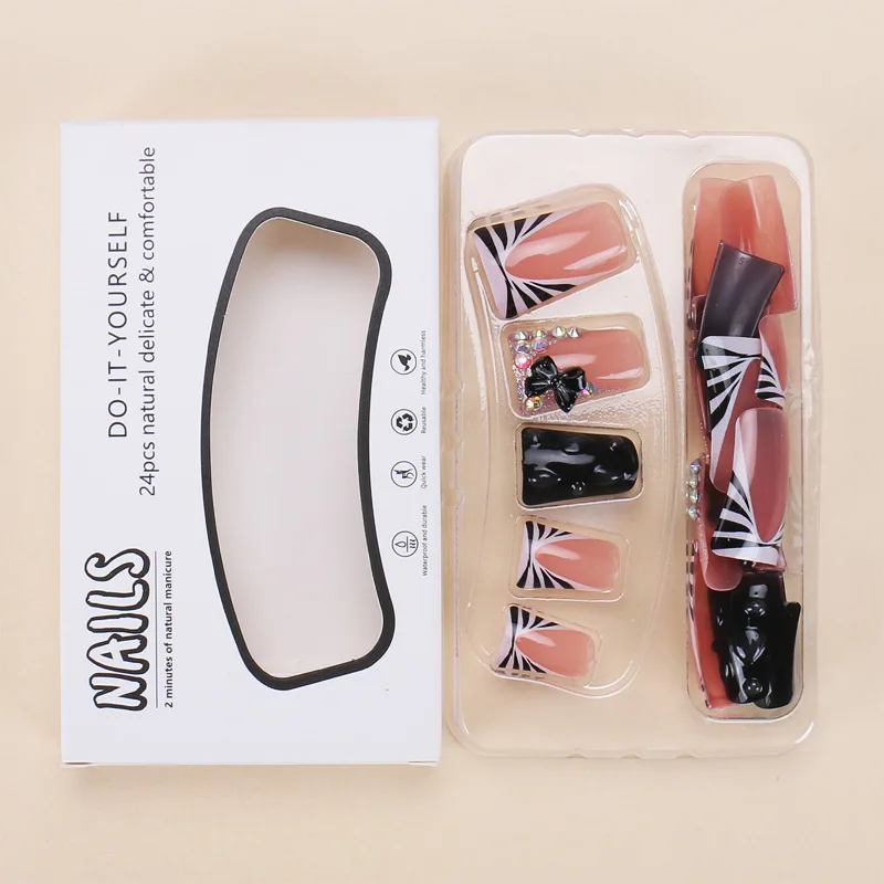Featuring sparkling diamond bow decor, these press-on nails are designed to catch the eye. Easy to apply, they can instantly elevate your style, making them perfect for any occasion—from casual outings to glamorous events.