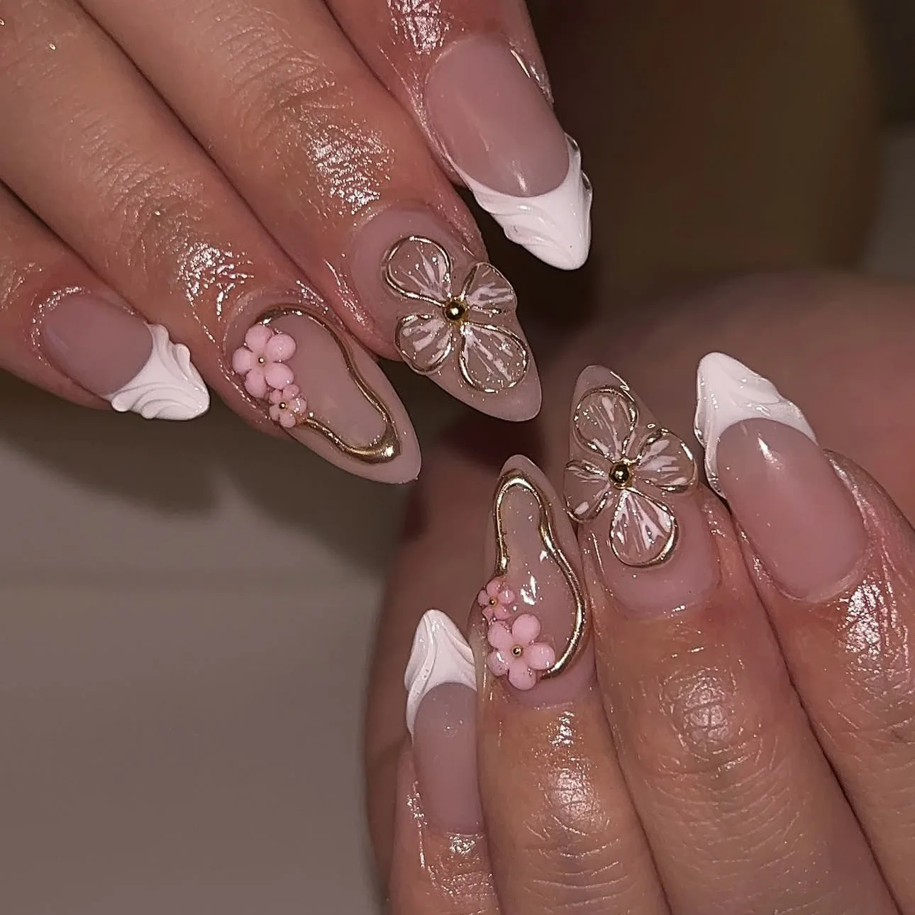 Transform your nails with our stunning 3D fake nails featuring a gorgeous gradient and floral patterns.
