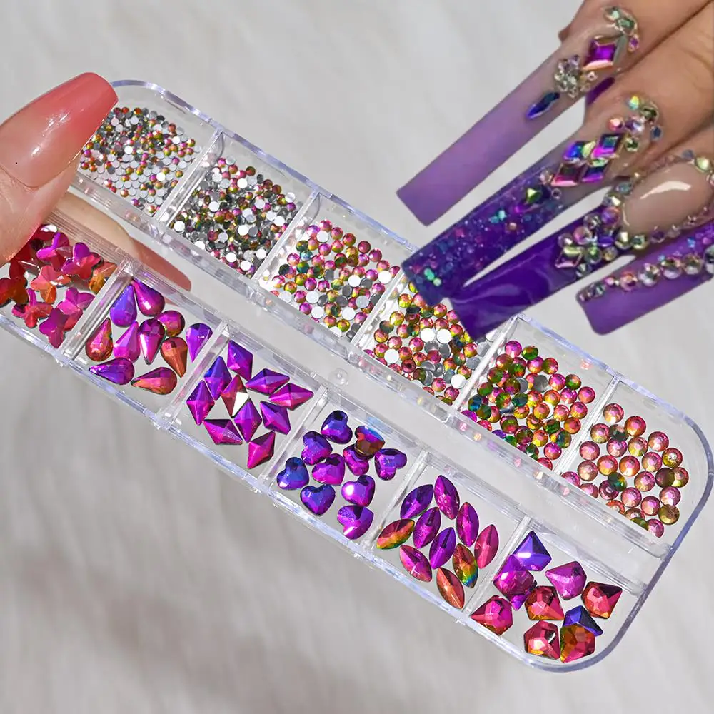 Add a touch of glamour to your manicure with our 12Grids 3D Nail Art Rhinestones Mixed Set. This collection features a variety of shapes, including hearts, butterflies, and more, allowing you to create stunning nail art.