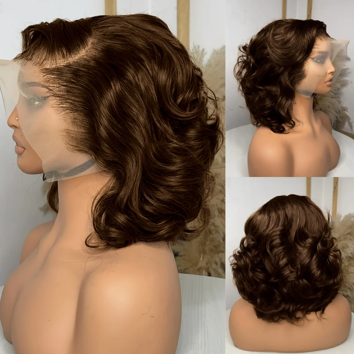 Experience beauty and versatility with our 220% Density Dark Brown #4 Short Bob Wigs. This stunning body wave wig features a 13x4 HD lace front that blends seamlessly with your natural hairline.