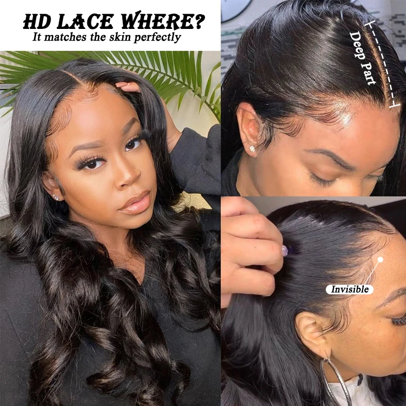 Experience the luxury of our Body Wave True HD Lace Wig, crafted from Brazilian virgin hair for a stunning appearance.