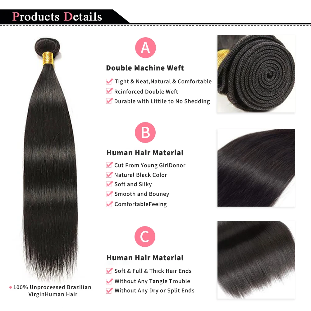 Introducing our Natural Color Straight Human Hair Bundles, available in lengths ranging from 14 to 30 inches. These Brazilian Remy hair extensions are designed for those who want to add length and volume to their hair with a natural appearance.