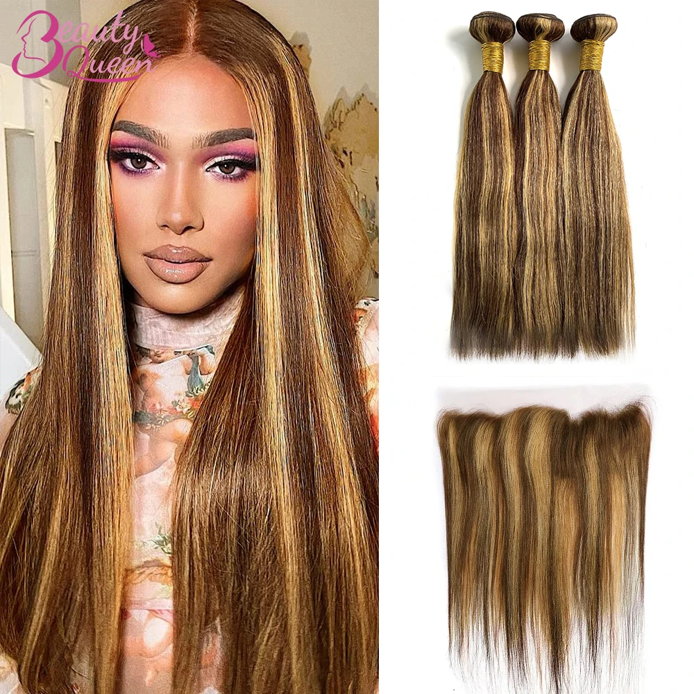 -26%Colored Bundles with Closure - Ombre Brown Style