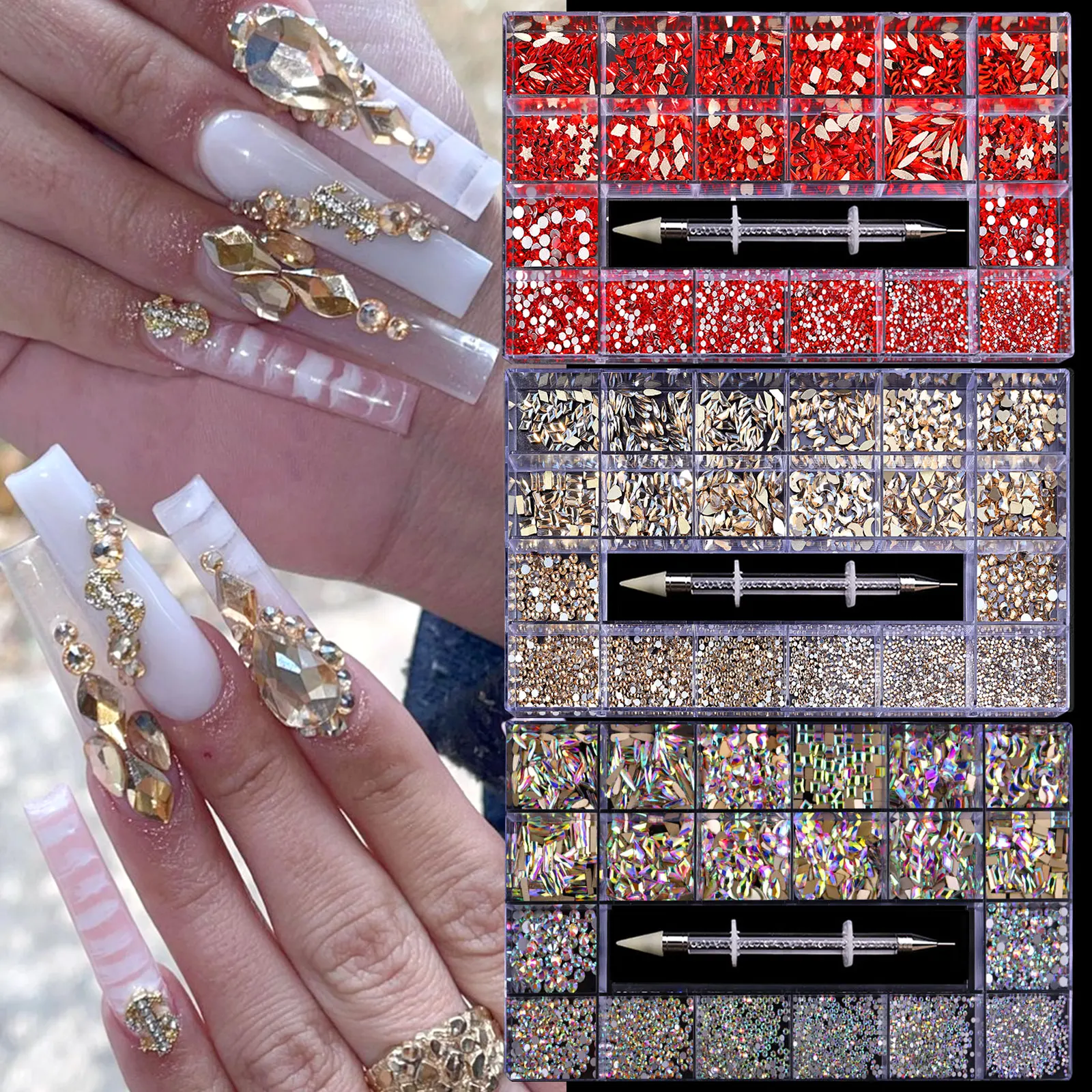 Transform your manicure into a dazzling masterpiece with our Crystal Diamond Nail Art Decoration set. This comprehensive collection includes a 21-grid box for easy organization, so you can keep your nail art supplies tidy and accessible.