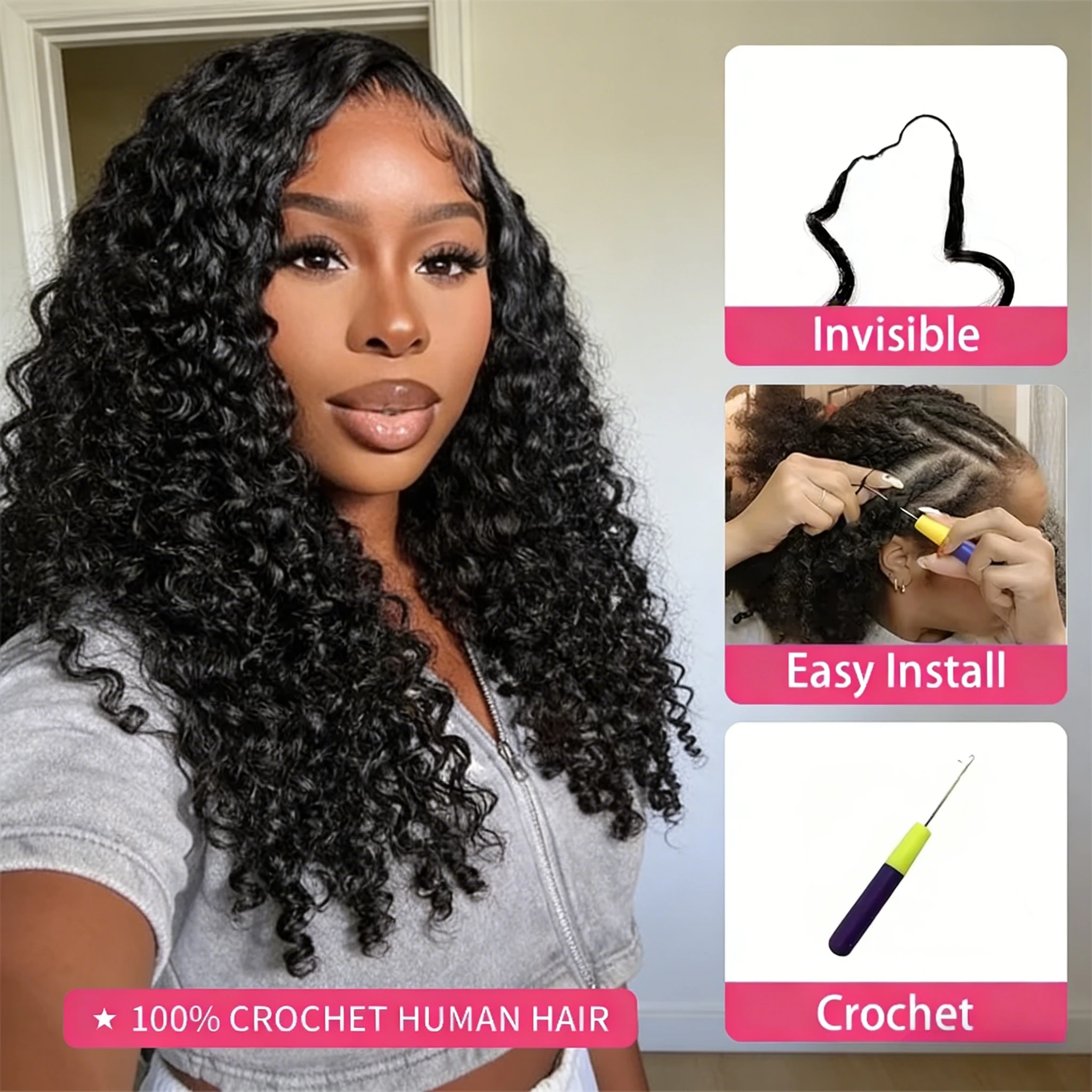 -26%Curly Human Hair Crochet - Knotless Extensions