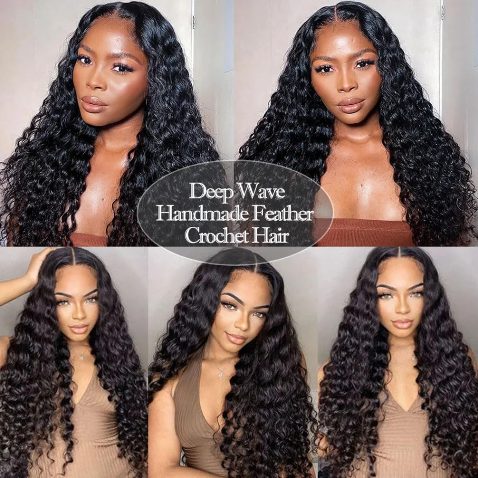Introducing our Deep Wave Crochet Human Hair Extensions, designed for those who want to achieve beautiful waves with minimal effort. These extensions are pre-separated and feature an invisible knot design for a natural look.
