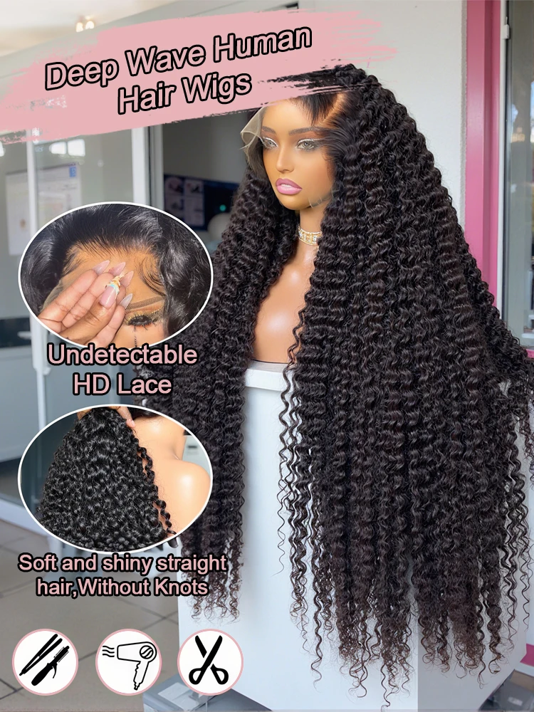 Embrace your curls with our deep wave HD lace front wig designed for a flawless look.