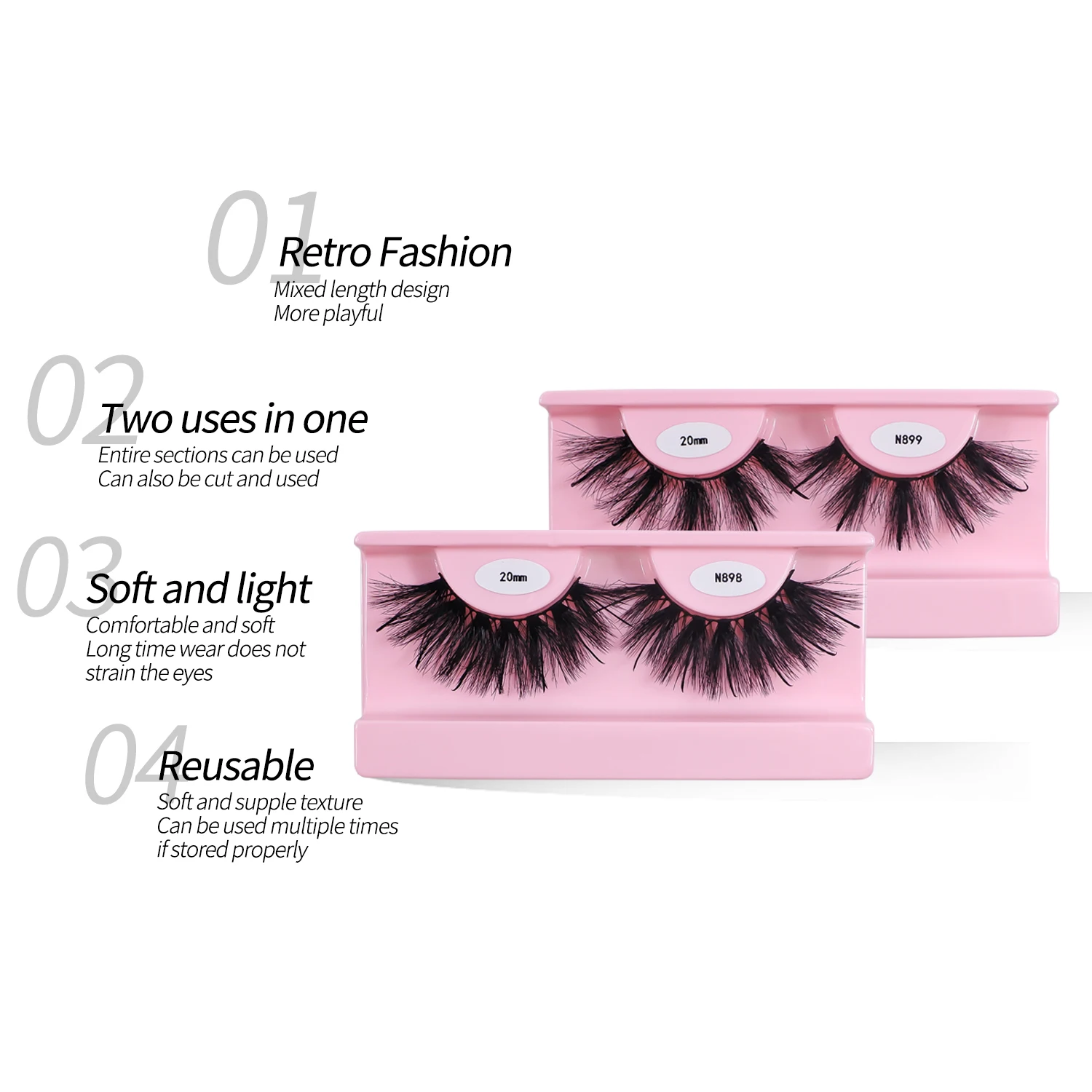 Crafted from high-quality faux mink fibers, these lashes are soft, lightweight, and comfortable to wear. The flexible band ensures easy application and a secure fit, allowing you to enjoy your stunning lashes all day long.