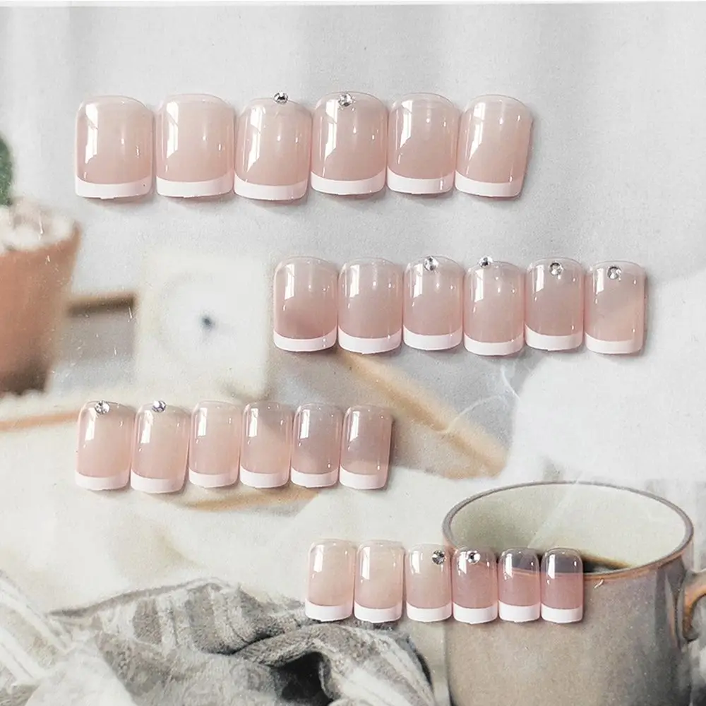Transform your manicure with the 24pcs French White Side False Nails. These false nails are designed for those who want a refined look without the hassle of salon visits. The beautiful rhinestone designs add a touch of sparkle, making them perfect for any occasion.