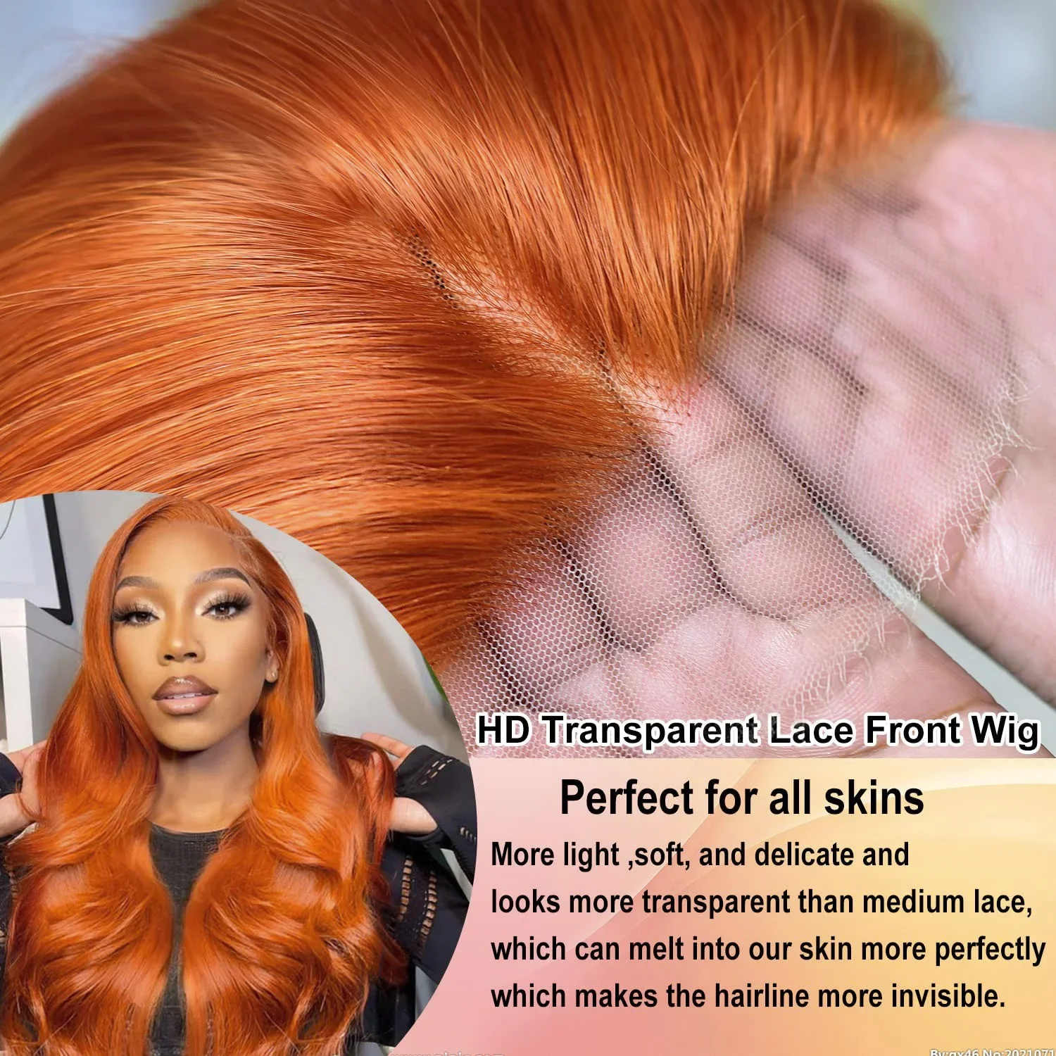 Experience the elegance of our 300 Density Ginger Orange 13x6 HD Body Wave Lace Front Wig. Measuring 30 inches, this wig is crafted from 100% human hair, ensuring a natural look and feel. Perfect for any occasion, this wig is a must-have for those who love to stand out.