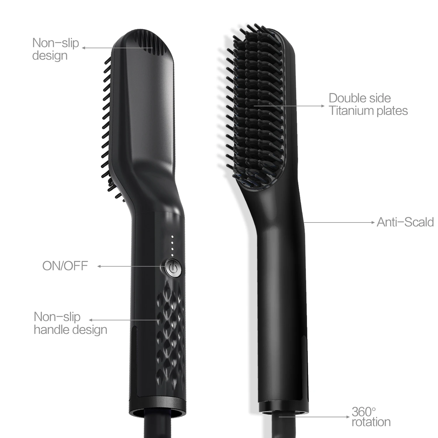 This straightening brush features hot comb technology for fast, effective hair styling.