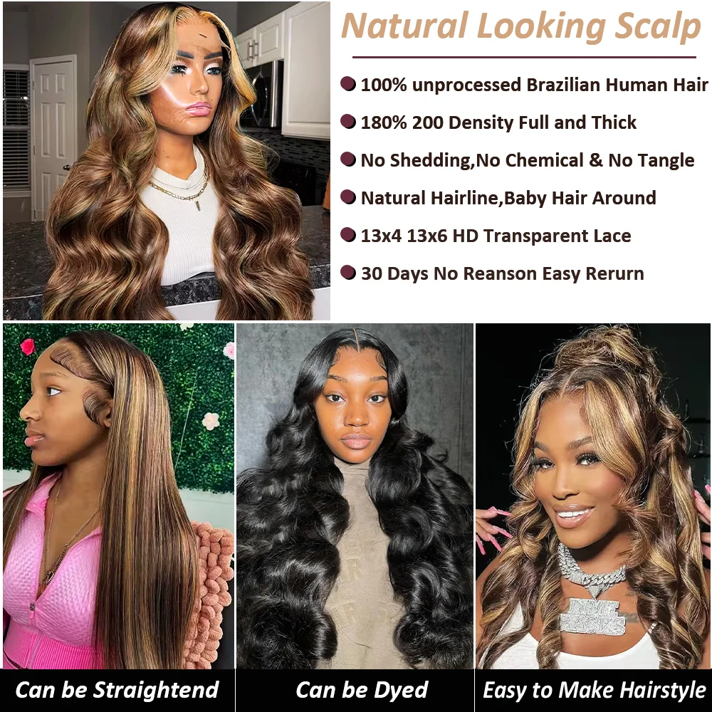 Transform your look with our HD highlight lace frontal wig. Gorgeous body wave style that is pre-plucked for convenience.