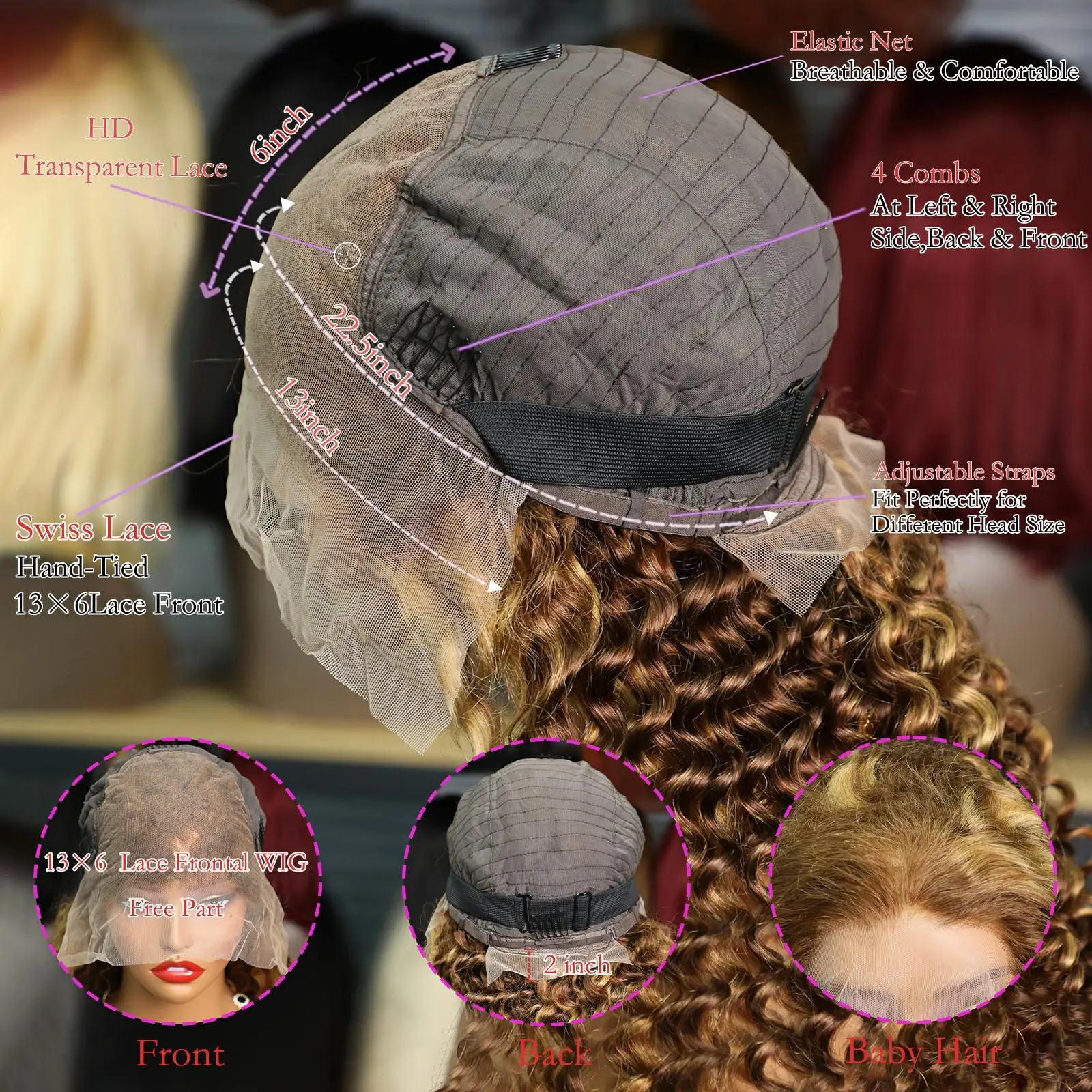 The 4/27 Highlight Honey Brown Curly Wig is the perfect addition to any fashionista’s collection. This stunning wig features a blend of deep water wave curls that provide a voluminous, glamorous look, all while being incredibly comfortable to wear.