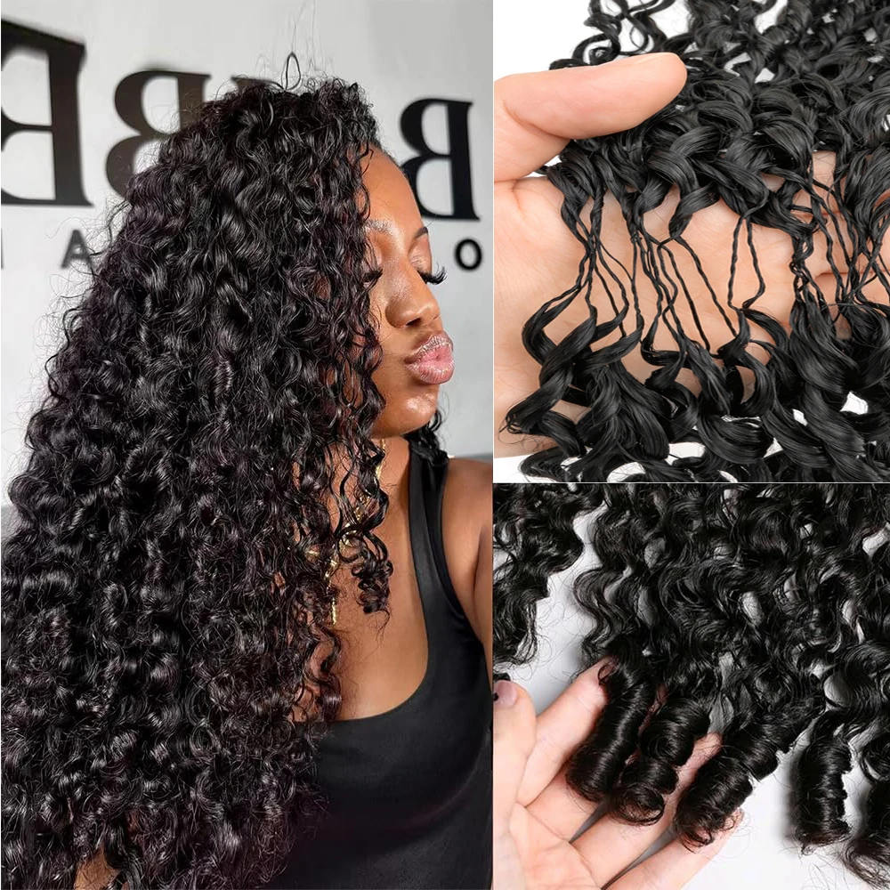 Transform your look instantly with our Pre Loop Invisible Burmese Curly Crochet Hair. These 100% unprocessed virgin kinky curly hair extensions are perfect for adding volume and length to your natural hair.
