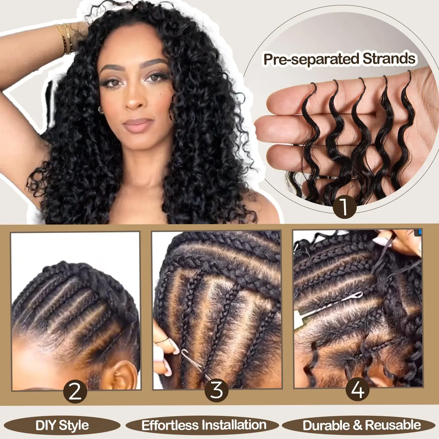 Elevate your hairstyle with our Invisible Burmese Curly Crochet Hair Extensions. Perfect for adding volume and length.
