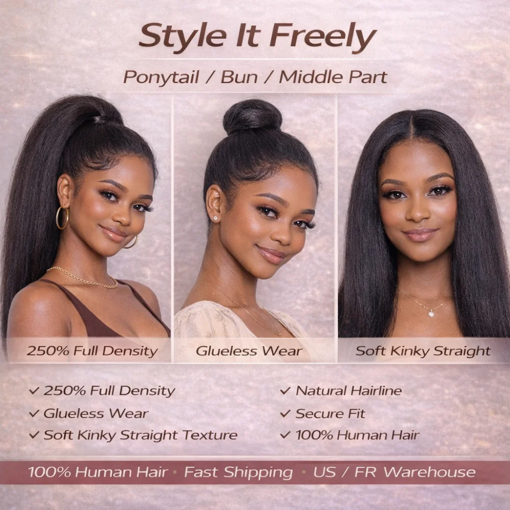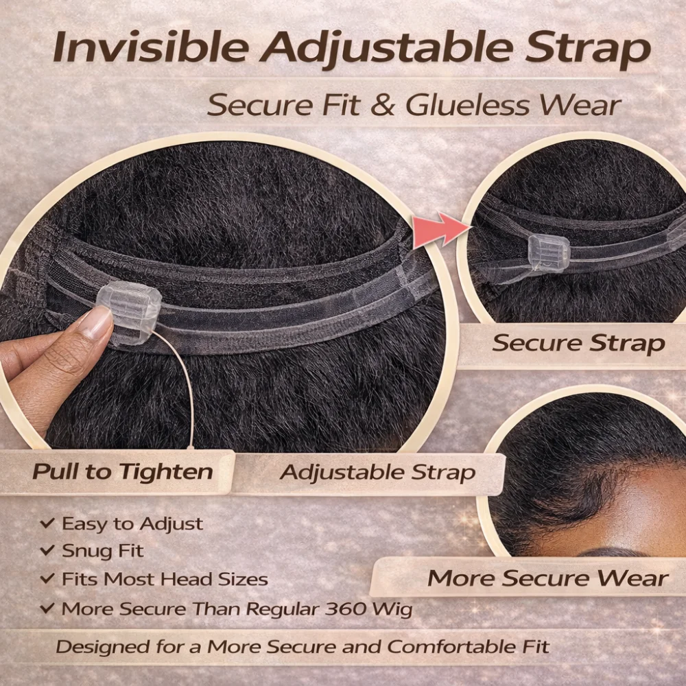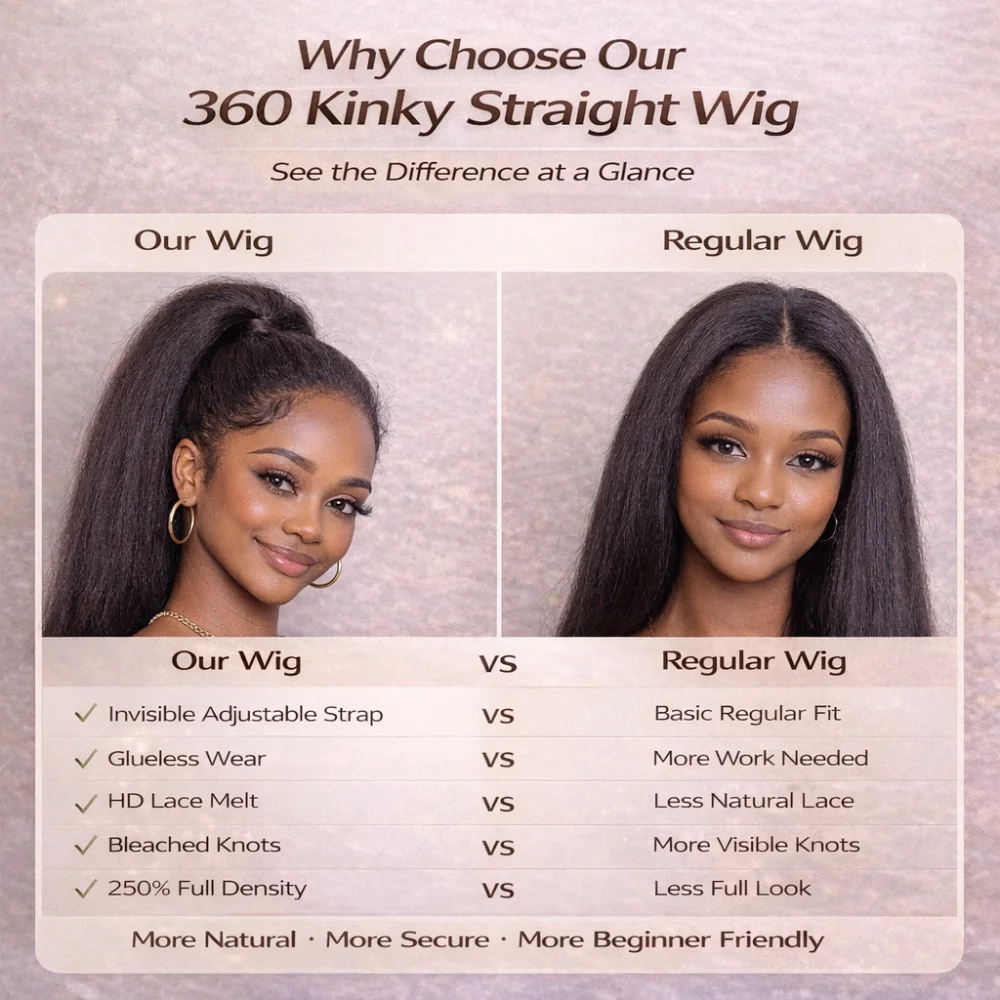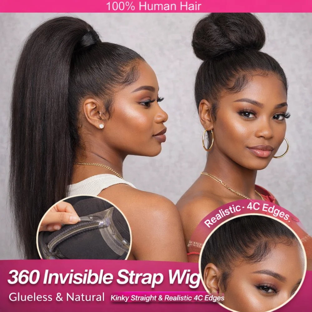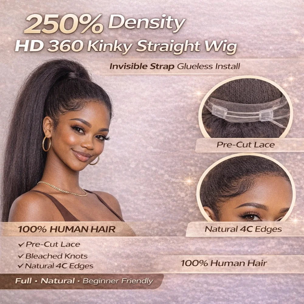 Experience the luxury of our Glueless 360 Kinky Straight Wig. Perfectly designed for a natural look.