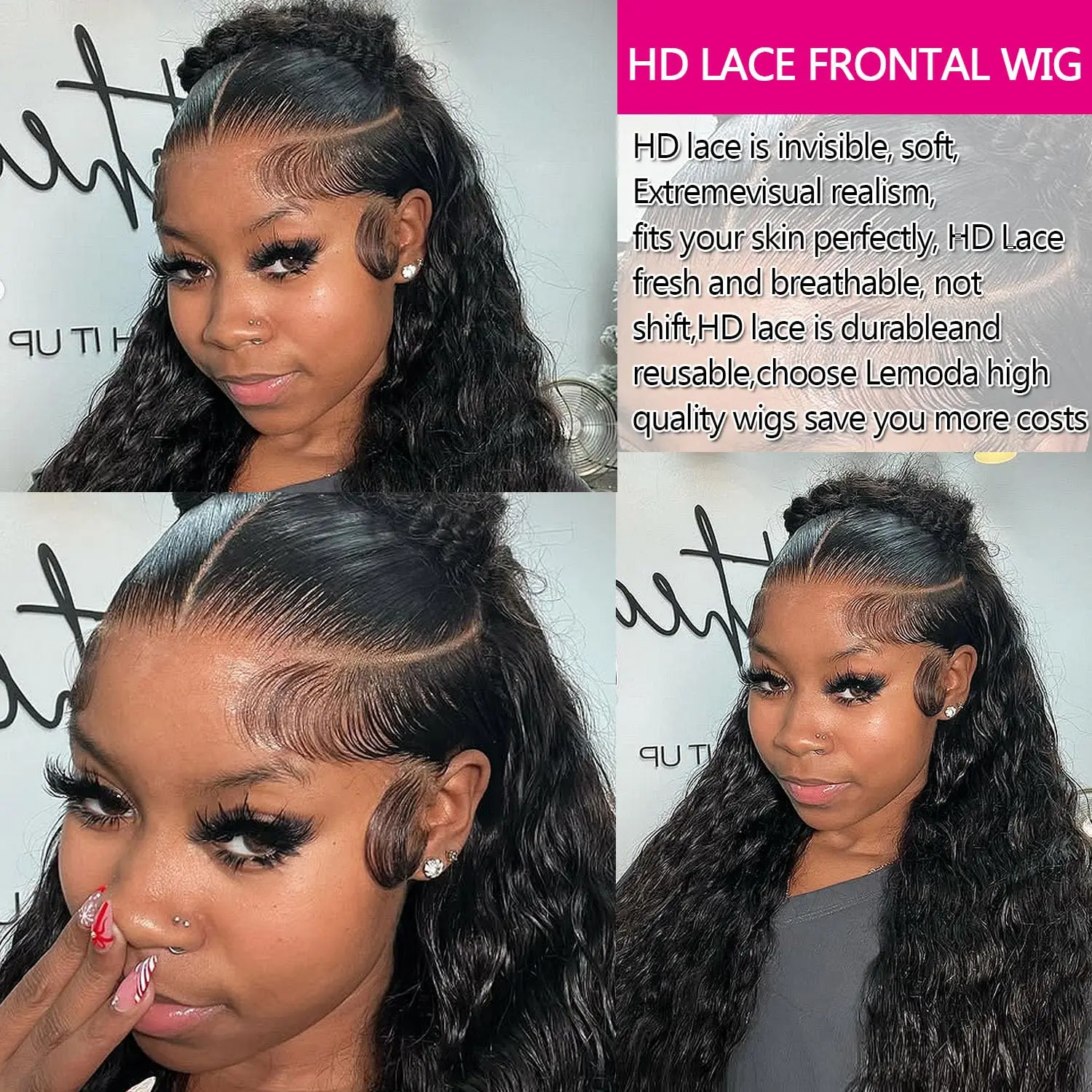 Achieve a glamorous style with Lemoda 30 Inch Deep Wave Full Lace Frontal Wig. Perfect for versatile and stunning looks.