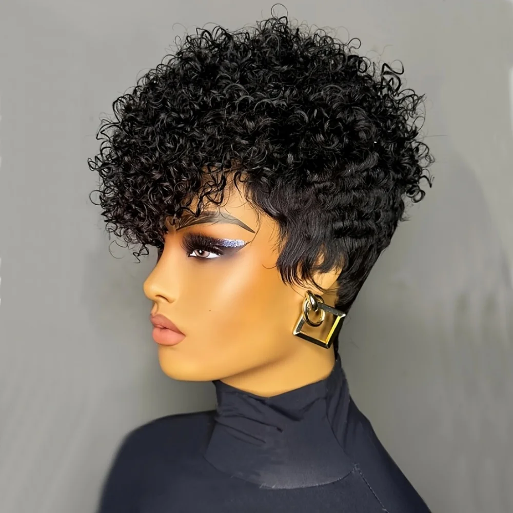 Embrace a fresh and edgy look with our Short Natural Black Human Hair Pixie Cut Wig. This stylish wig is designed to give you an effortless yet chic appearance, perfect for any fashion-forward individual.