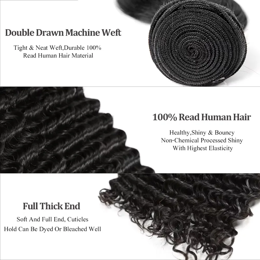 Made from 100% unprocessed Remy hair, these deep wave extensions are soft, silky, and tangle-free. The natural black color blends seamlessly with your own hair, providing a flawless look. Each bundle contains high-quality hair that can be styled, dyed, and treated just like your own.