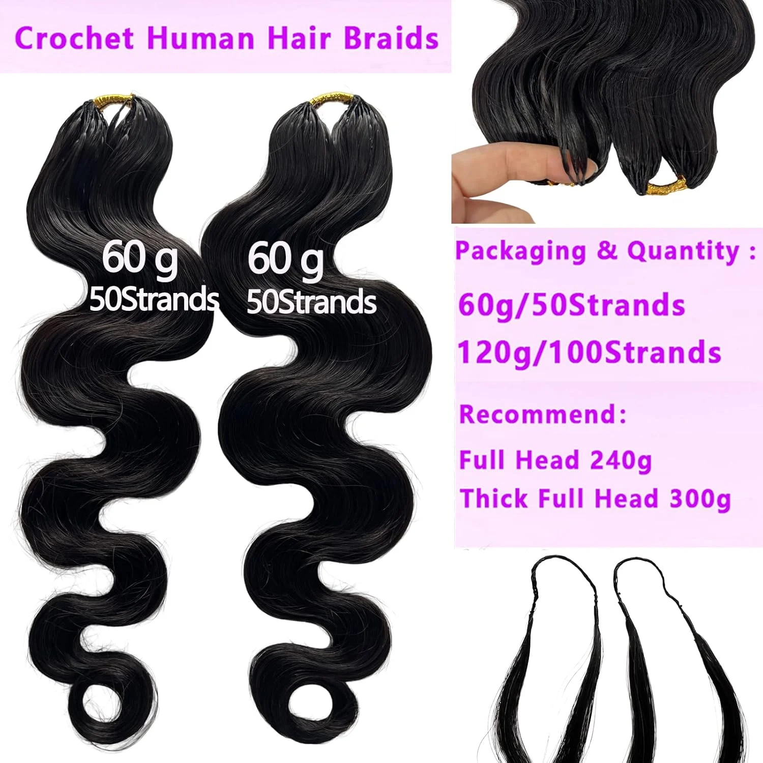 Transform your hairstyle with our Body Wave Feather Crochet Braid Human Hair Extensions. Available in a natural color, these extensions are perfect for those who love beautiful, flowing locks.
