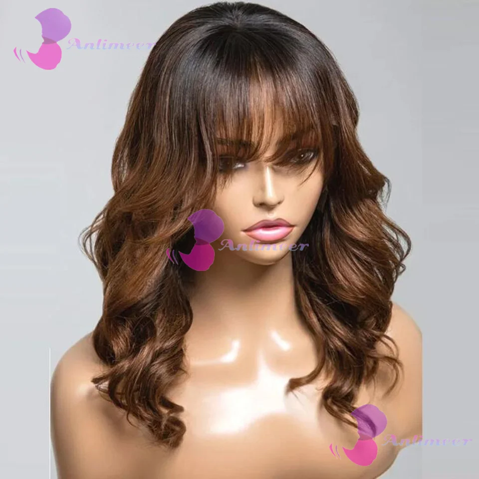 Our Finger Body Wavy Ombre Brown Wig with bangs offers a stylish and effortless look, perfect for any occasion.