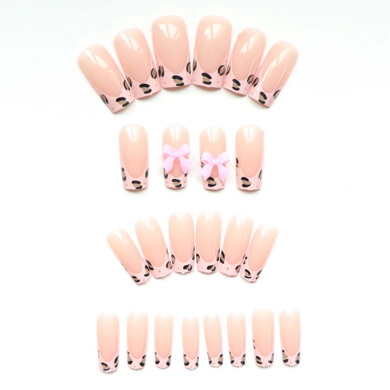 -20%Pink Leopard Print Bow Full Coverage False Nails