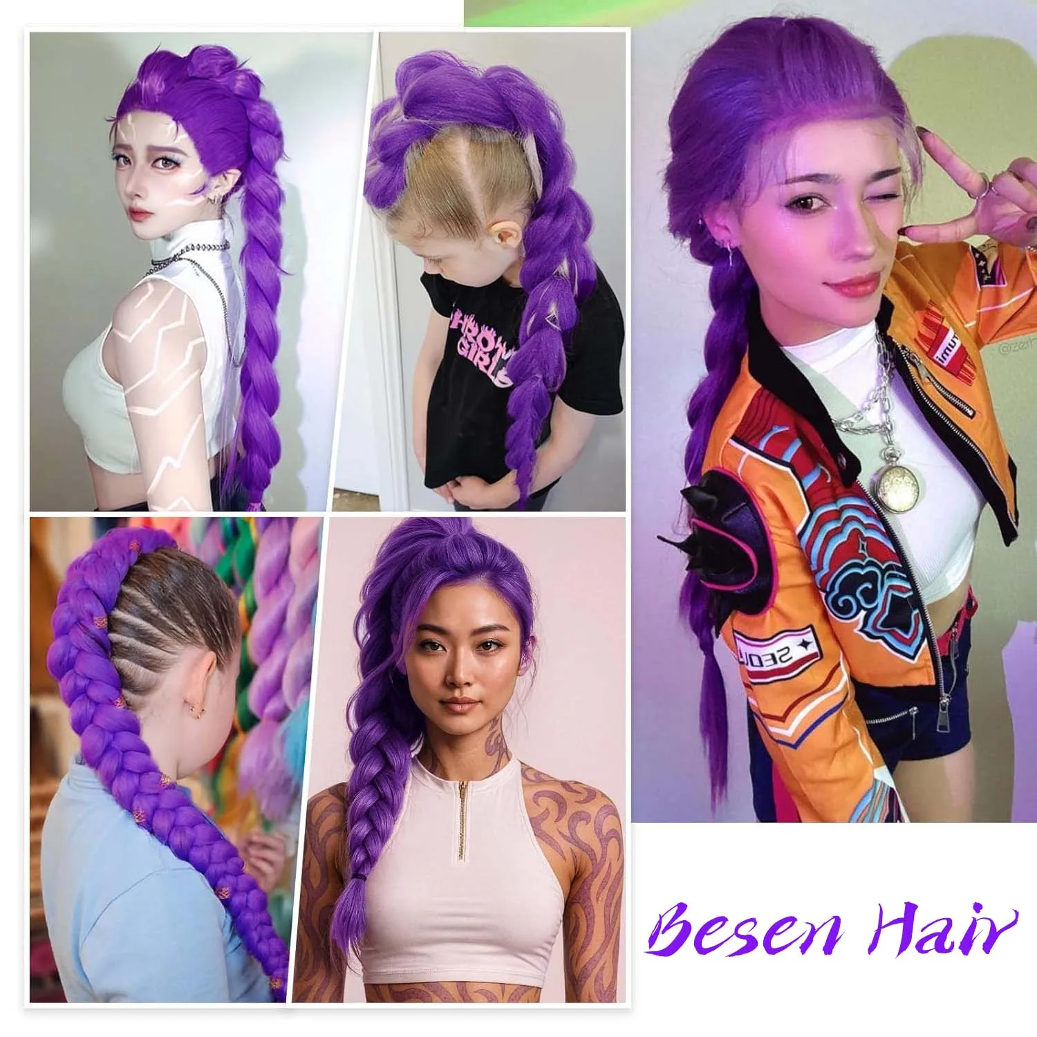 These 24-inch pre stretched braiding hair extensions are perfect for vibrant purple braids and styles.