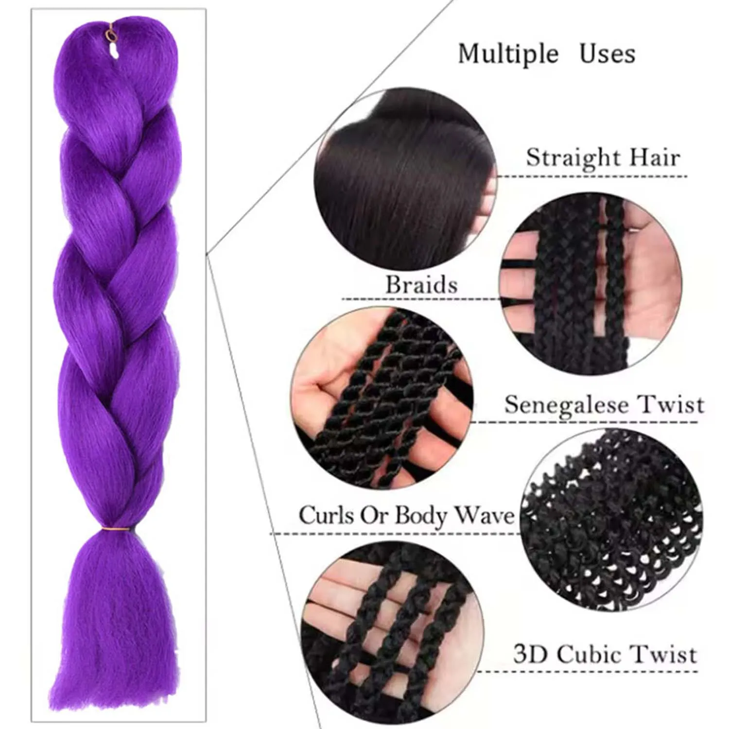 Unleash your creativity with our Synthetic Purple Braiding Hair! These 24-inch pre-stretched extensions are designed for easy styling, making them a great choice for anyone looking to add a burst of color to their braids.