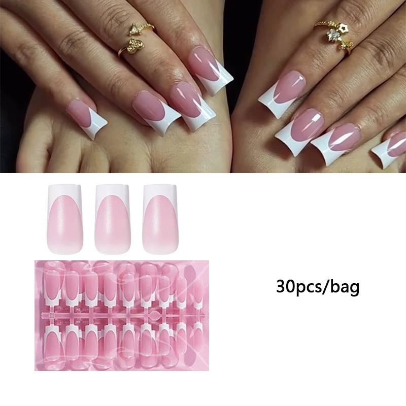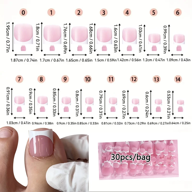 Achieve a perfect pedicure with our summer French gradient false toe nails, designed for easy application.