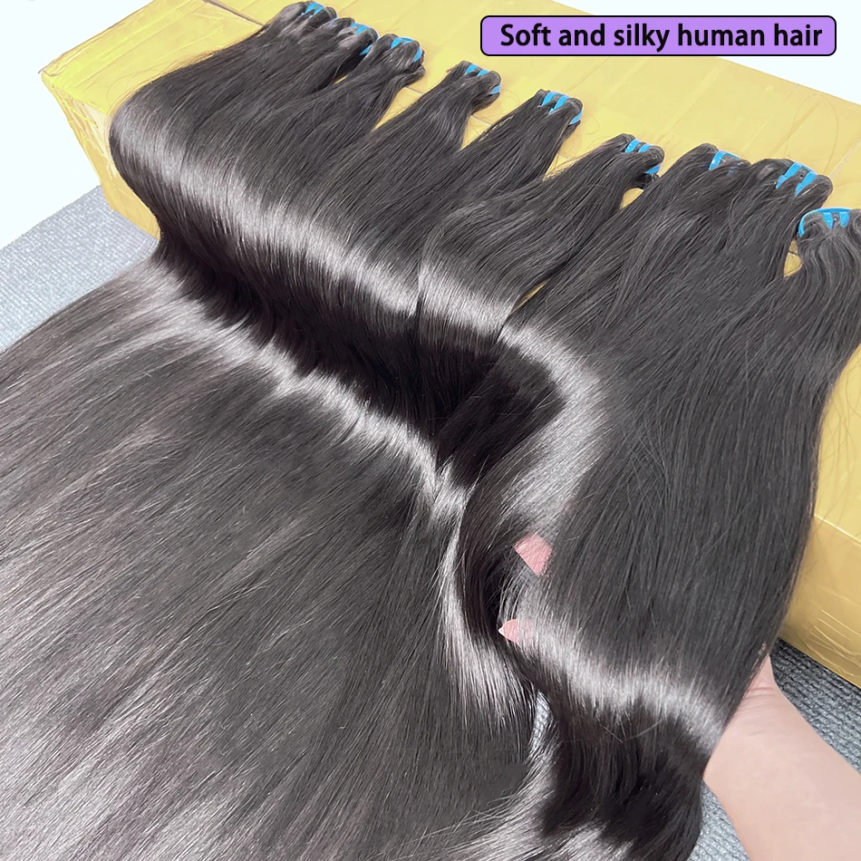 Achieve luxurious styles with our 18A Super Double Drawn Bone Straight Human Hair Bundles. Perfect for length and fullness.