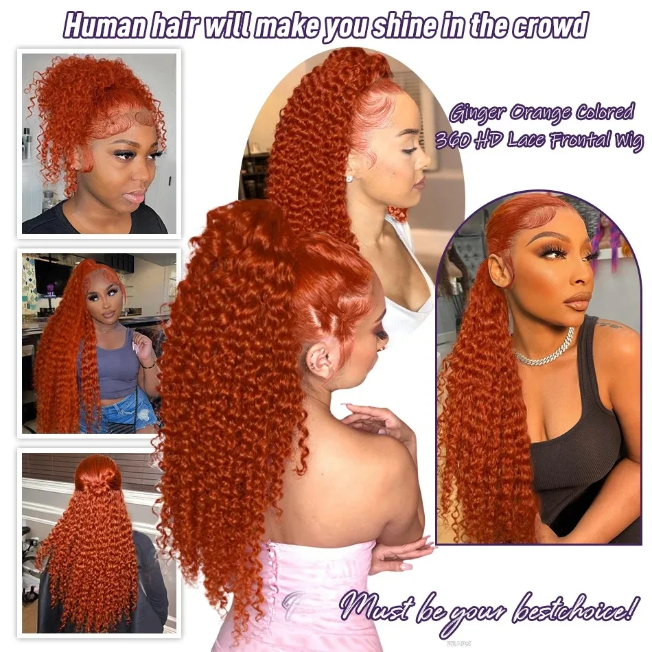 Elevate your style with our Orange Ginger 100% Human Hair Wig. This stunning 360 full lace wig is designed for women who want to make a statement. The deep wave texture adds a touch of elegance, while the vibrant orange ginger color provides a bold and unique appearance.