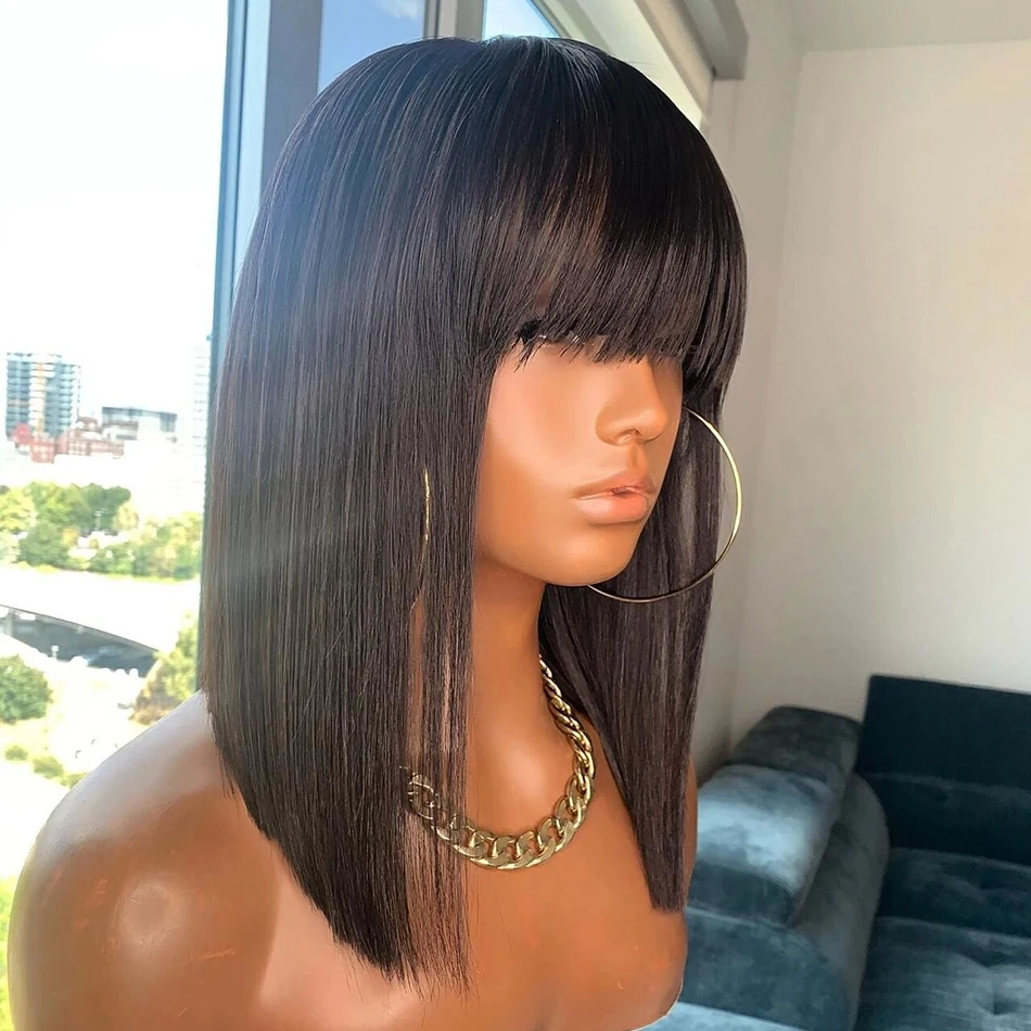 The Wiggogo 3X1 Lace Wig offers a chic bob style with bangs, crafted from premium human hair for a natural look.